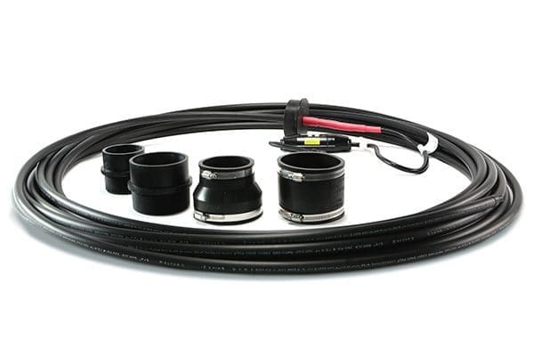 Le Retro-DWS est fabriqué d’une longueur prédéterminée de câble chauffant autorégulant Heat-Line certifié, installé en usine à l’intérieur d’un tube en PEHD de ½ pouce terminé par un joint d’extrémité fusionné . L’objectif du tube en PEHD est de constituer une barrière contre les fluides tels que les eaux grises et noires, tout en assurant un transfert de chaleur extrêmement efficace. Le système passera facilement dans la plupart des tuyaux pour des distances plus ou moins de150 pieds (46 mètres). Pour les longues distances, le Retro-DWS peut être tiré à l’aide d’un ruban adhésif ou d’un fichoir de plombier ou d’électricien. Le Retro-DWS est fourni avec des raccords de plomberie certifiés pour s’interfacer avec des tuyaux en ABS de 3 et 4 pouces en utilisant un regard de nettoyage existant, un Té ou un Y comme point d’accès.